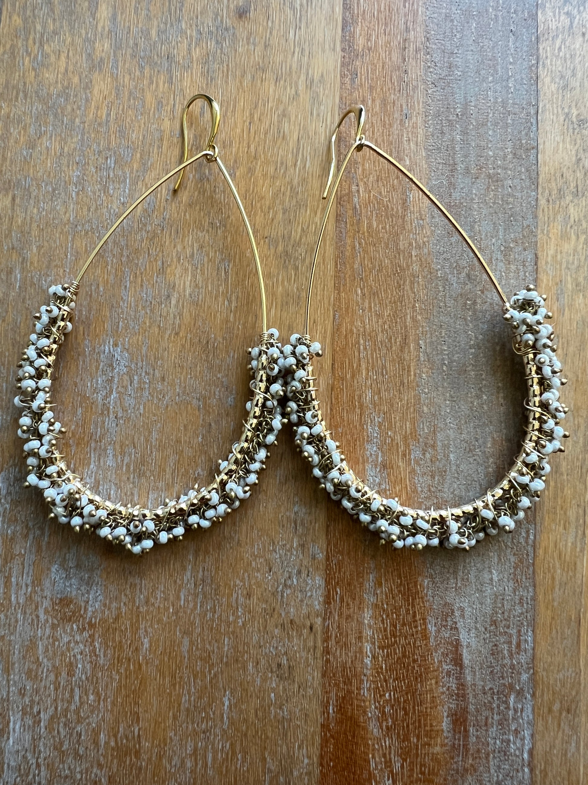 White beads wired on a pear-shaped dangle