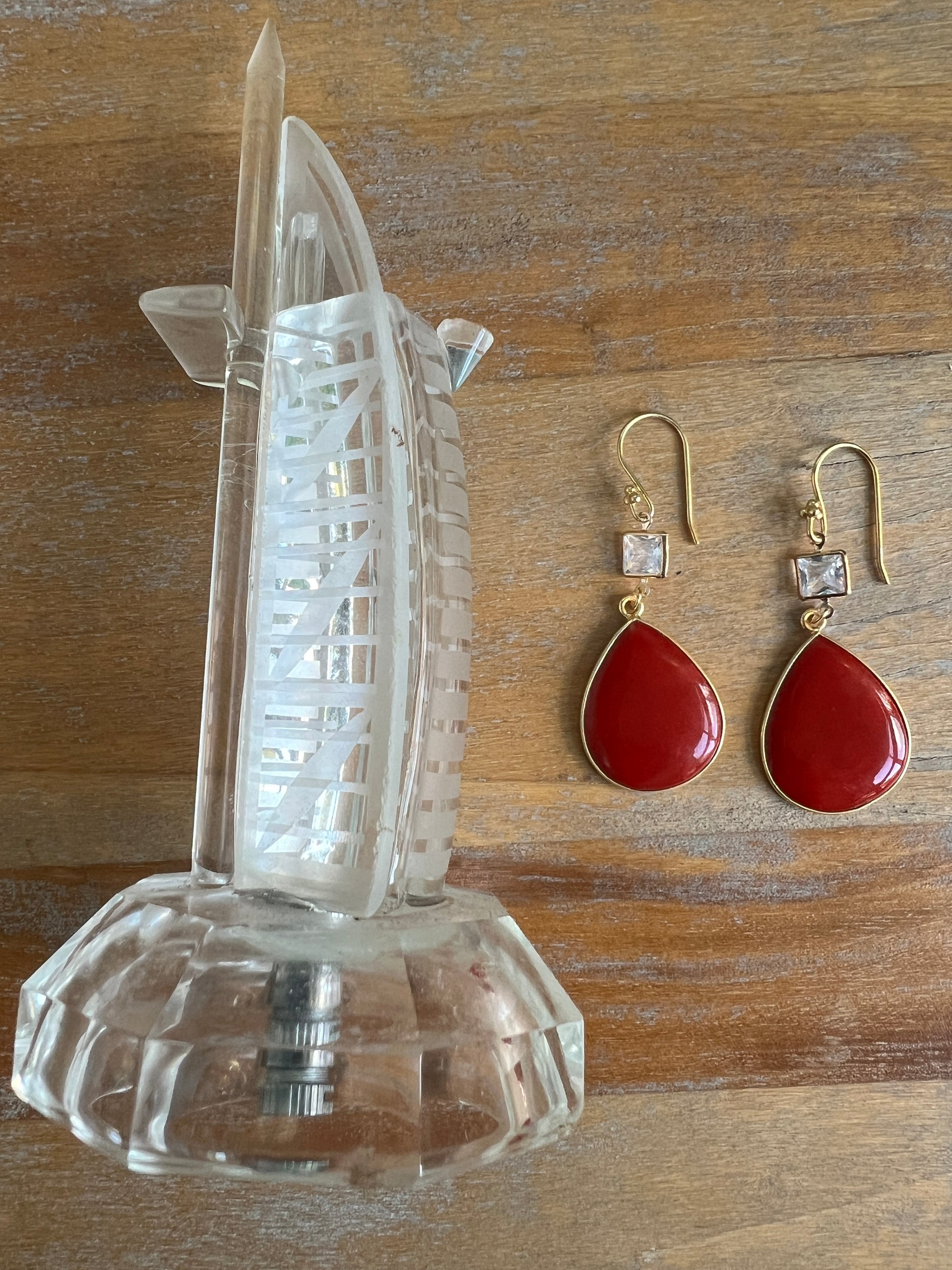 Wear these red coral dangle earrings as you stroll through the marketplace.