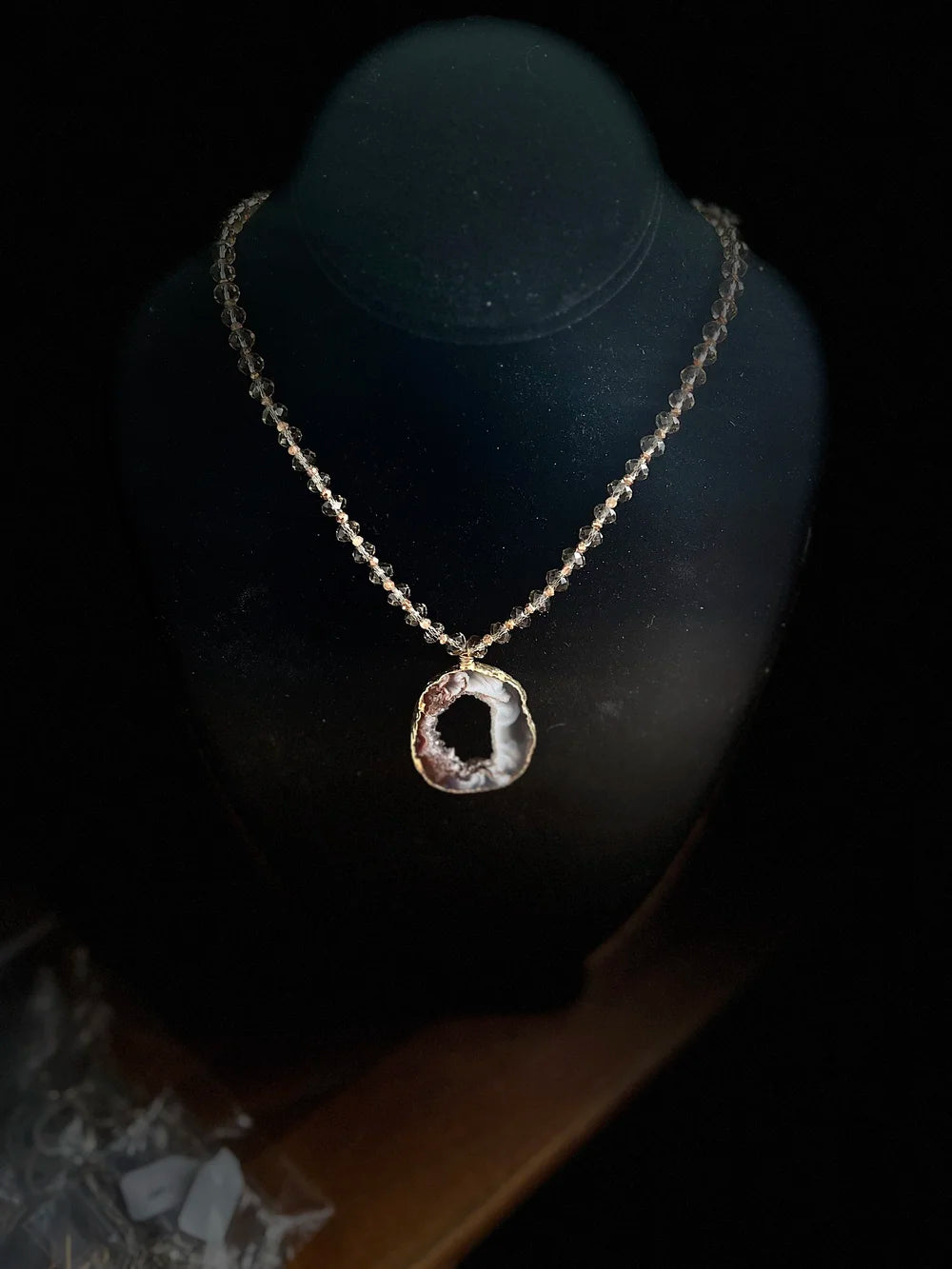 Faceted glass crystal bead chain with purple Druzy Pendant.