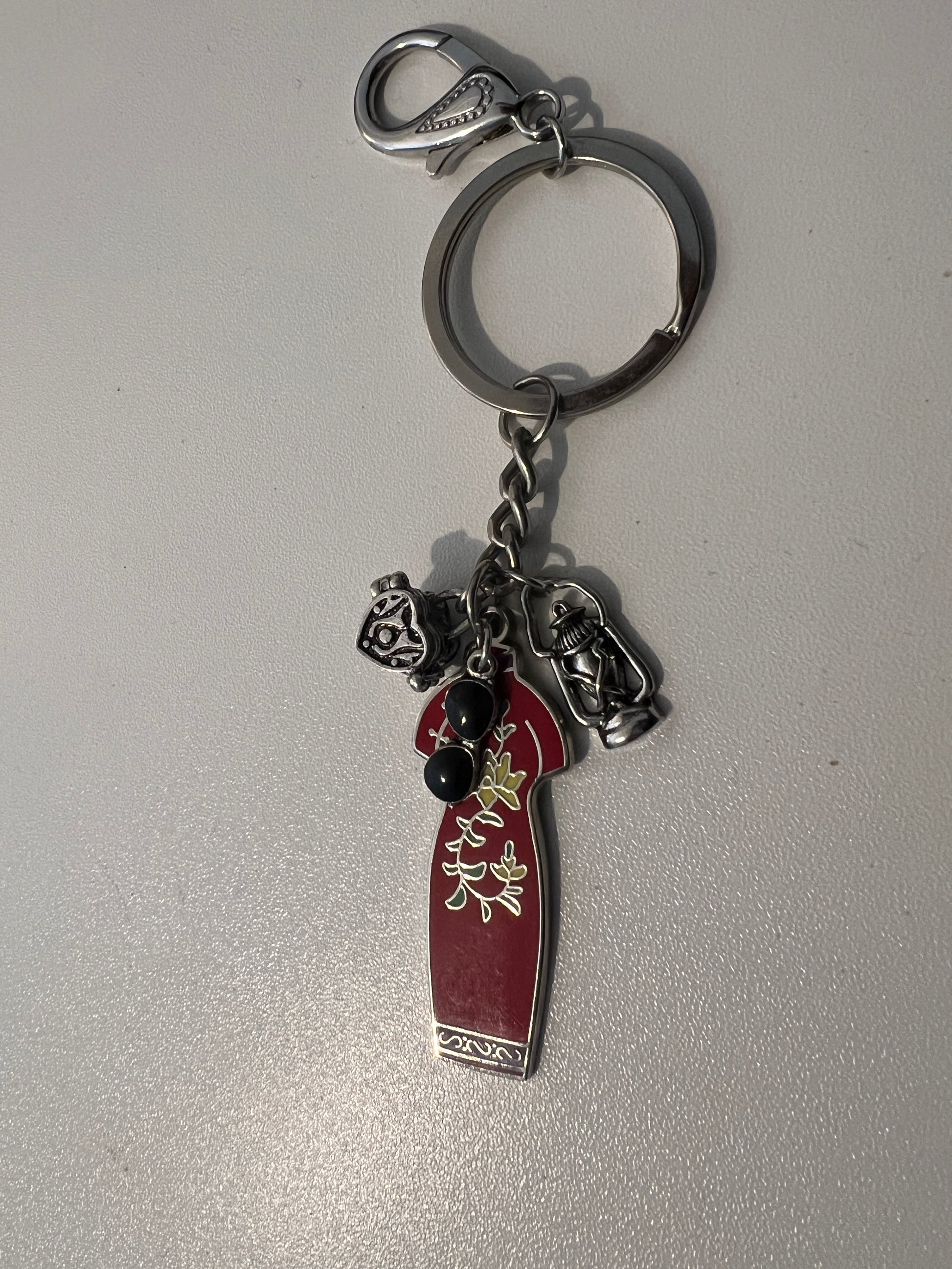 How does one travel the world? One place at a time! Take along this purse charm as a companion.